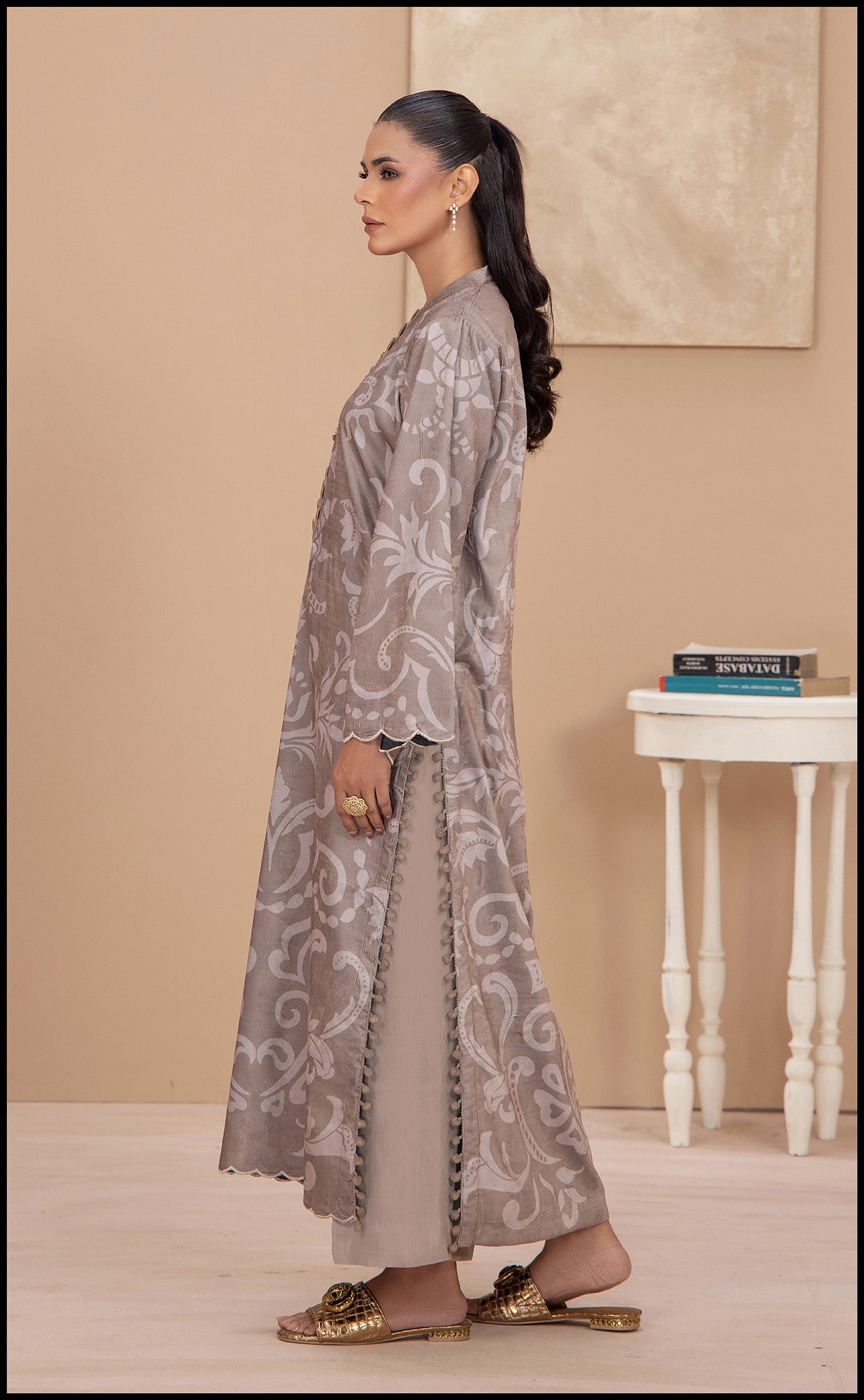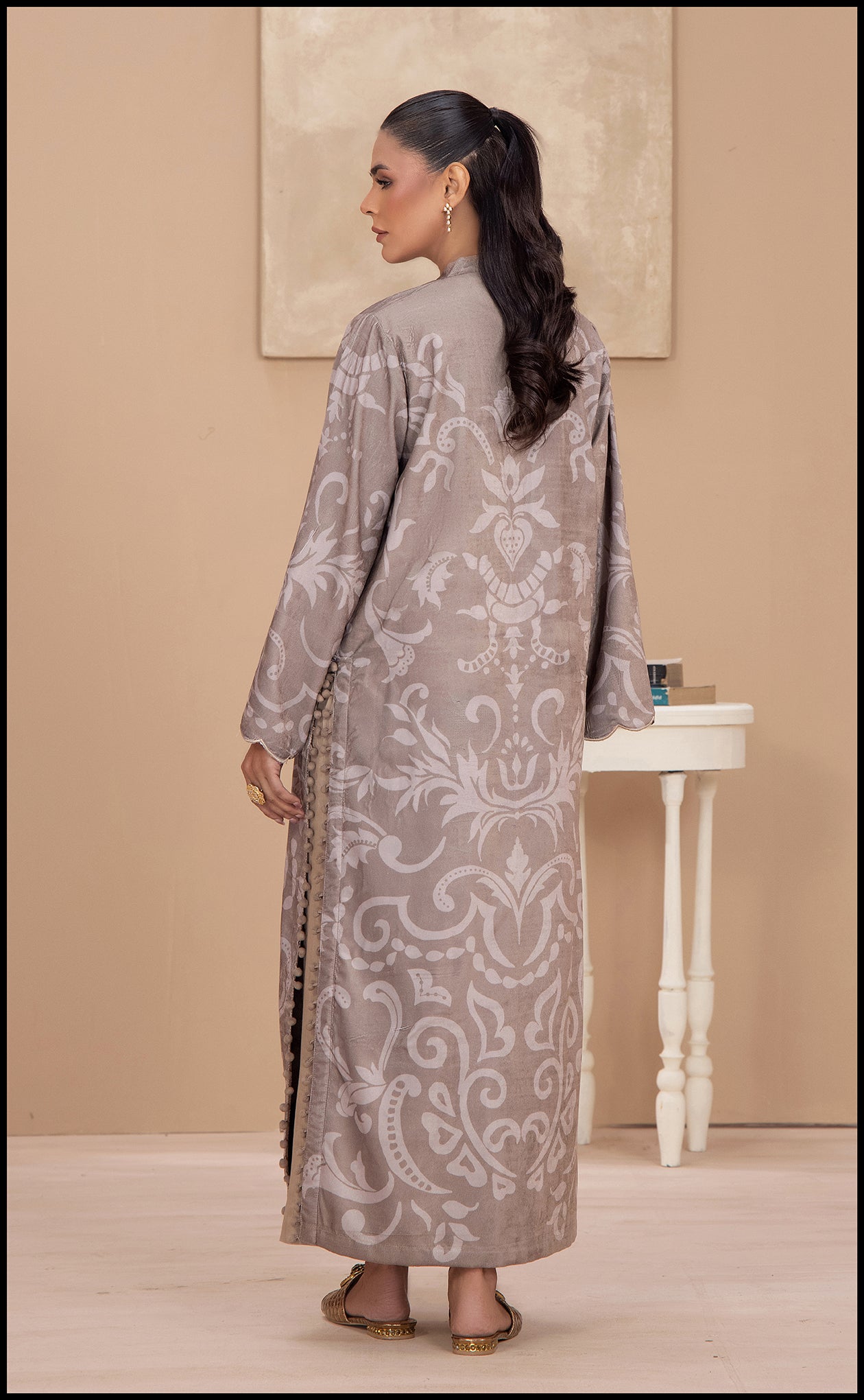 A regal collection of warm, sophisticated suits featuring long kurtas made from intricately printed velvet fabric, paired perfectly with comfortable viscose trousers for a luxurious winter look.