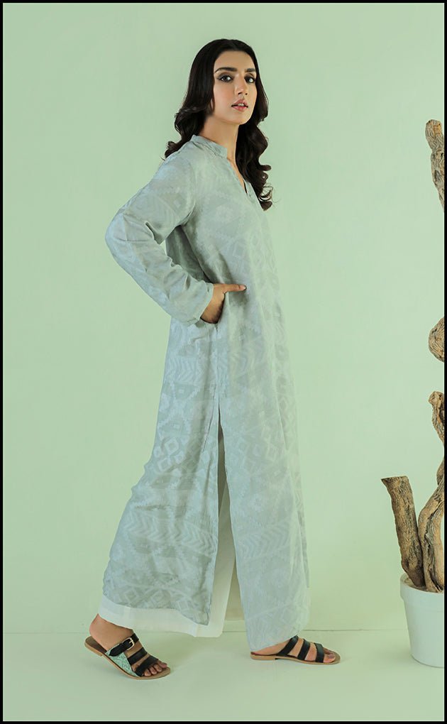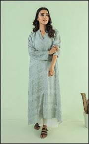 - Steel grey color defines the lining of the clouds in the spring season shines through the bright sun where we have defined the fabric with dying the cotton jacquard draped with the A line cut out to give this summer a luxury look to your wardrobe
