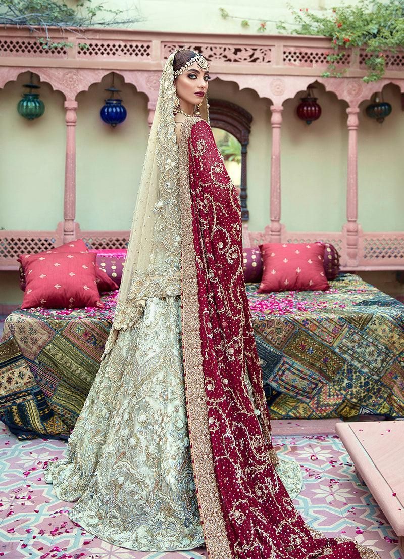 Perfecting the look with a gilded pure net dupatta with scalloped borders fully loaded with beautiful crystal and resham work.
