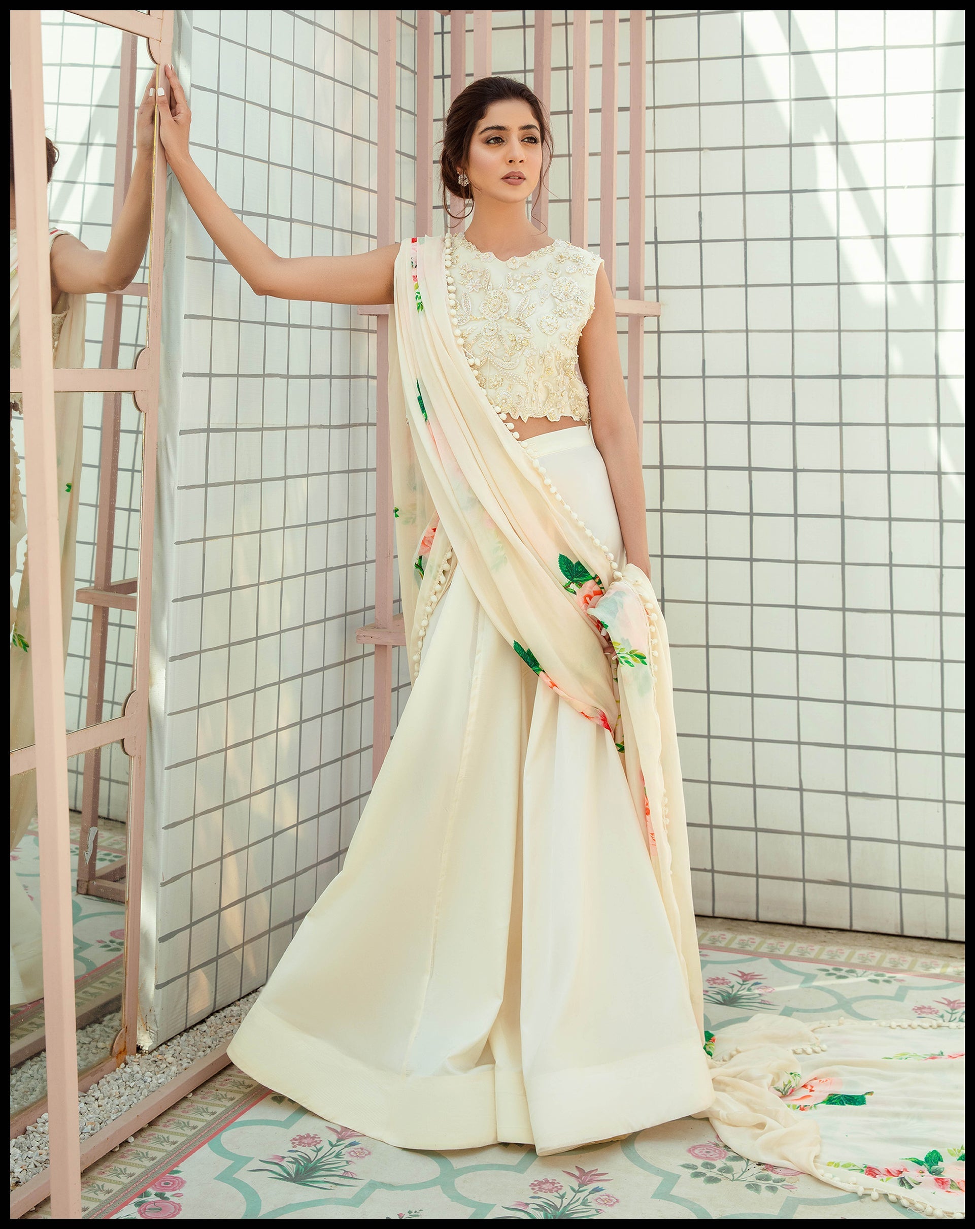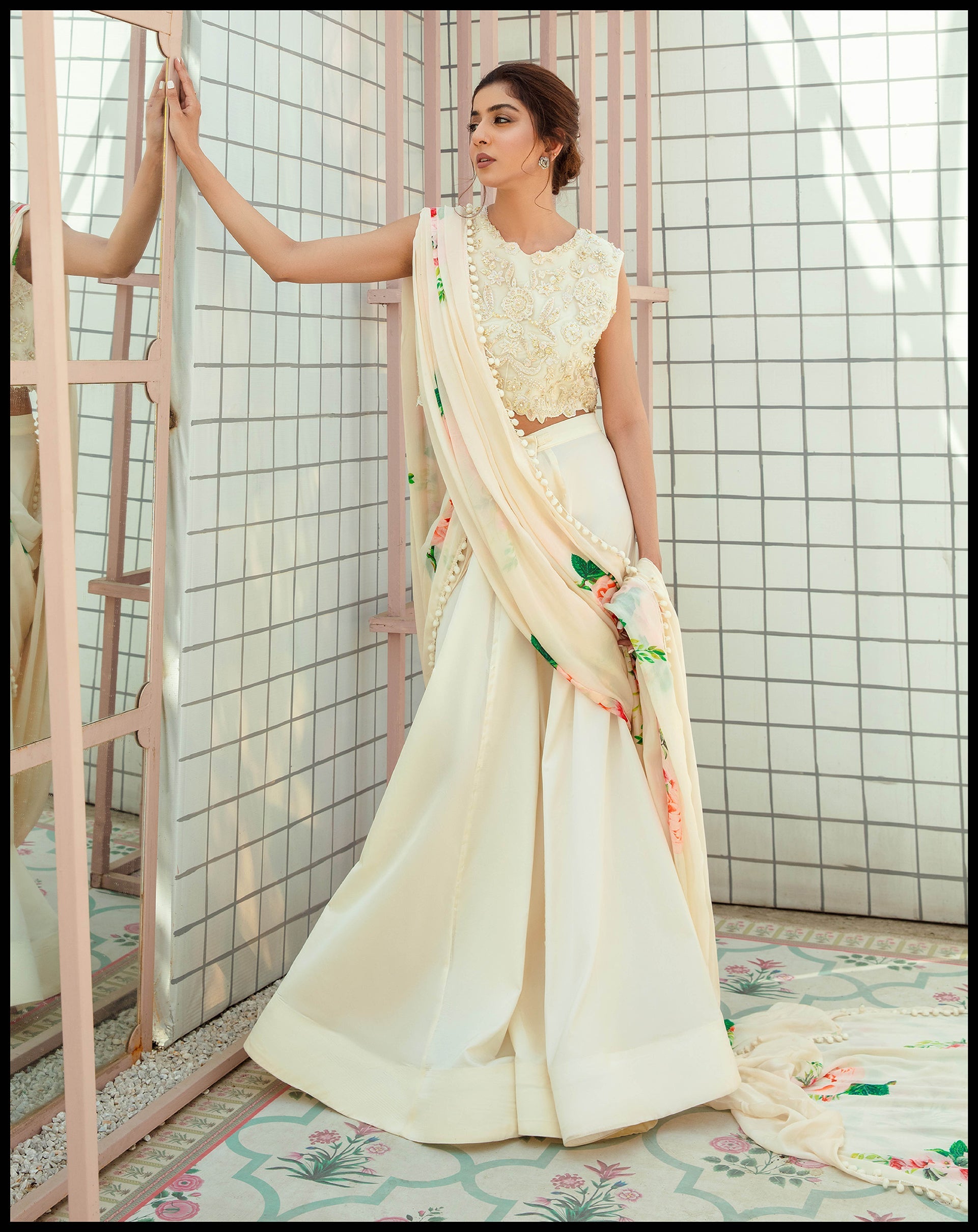 Heavily embedded 3d work hand crafted on the blouse which giving perfect loom look. It is paired with silk pants with a chic cut