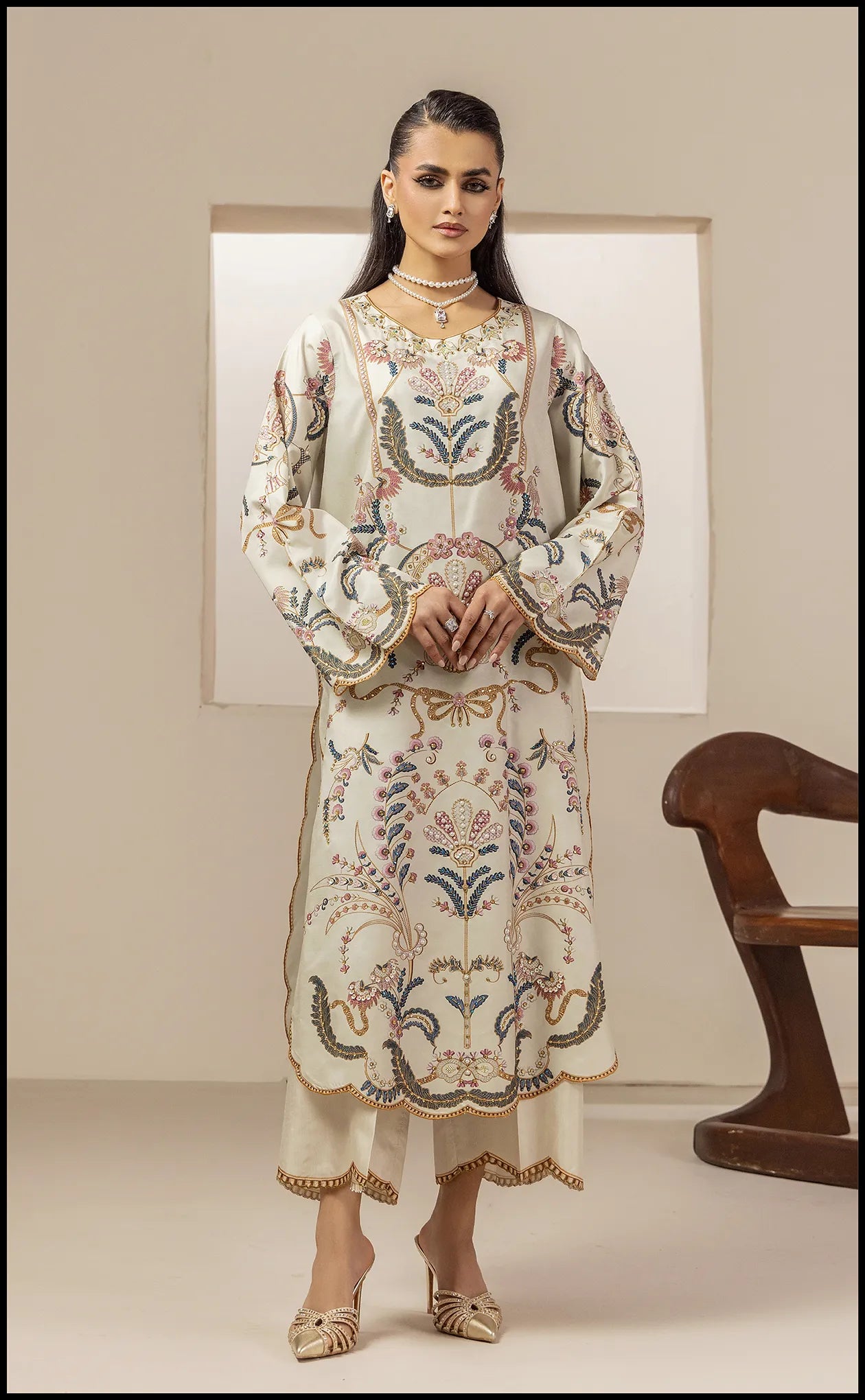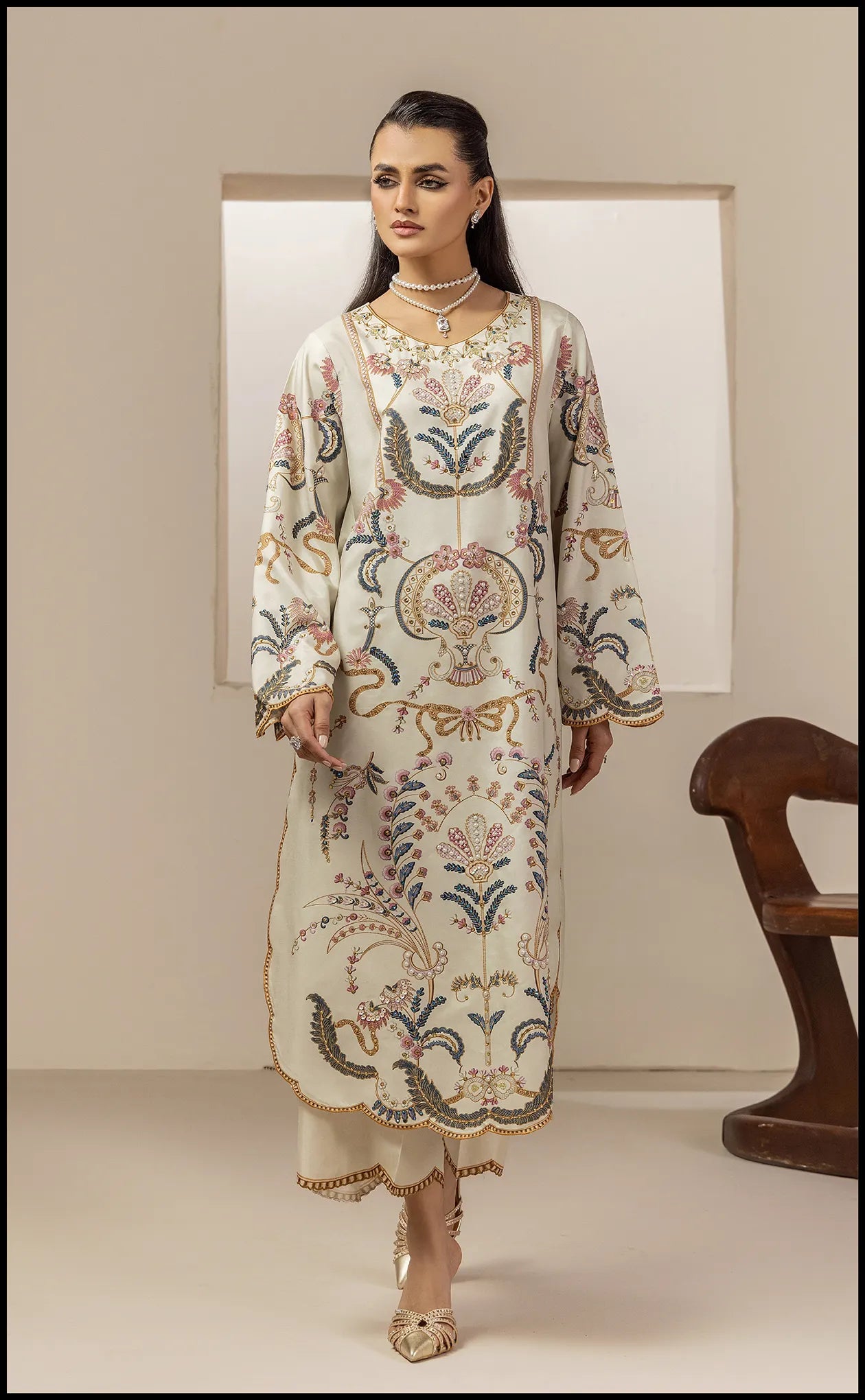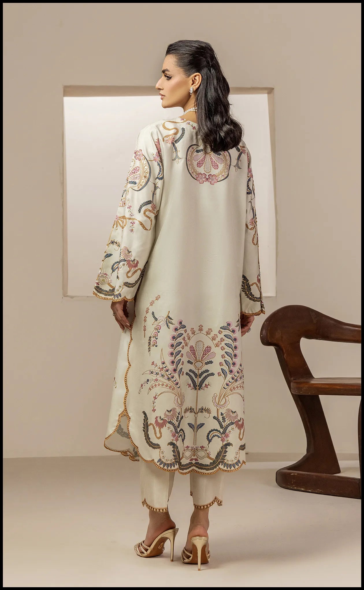 Crafted from luxurious raw silk, this elegant 2-piece ensemble features a beautifully print and subtly embellished shirt paired with a matching trouser. Perfect for festive occasions and special gatherings, Gulnaar exudes timeless charm and refined sophistication.